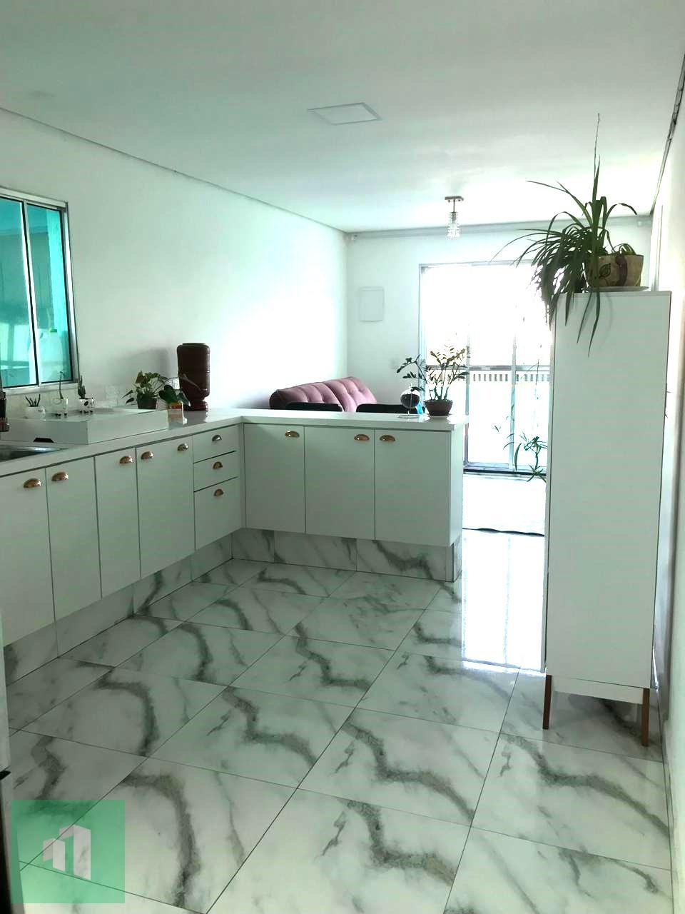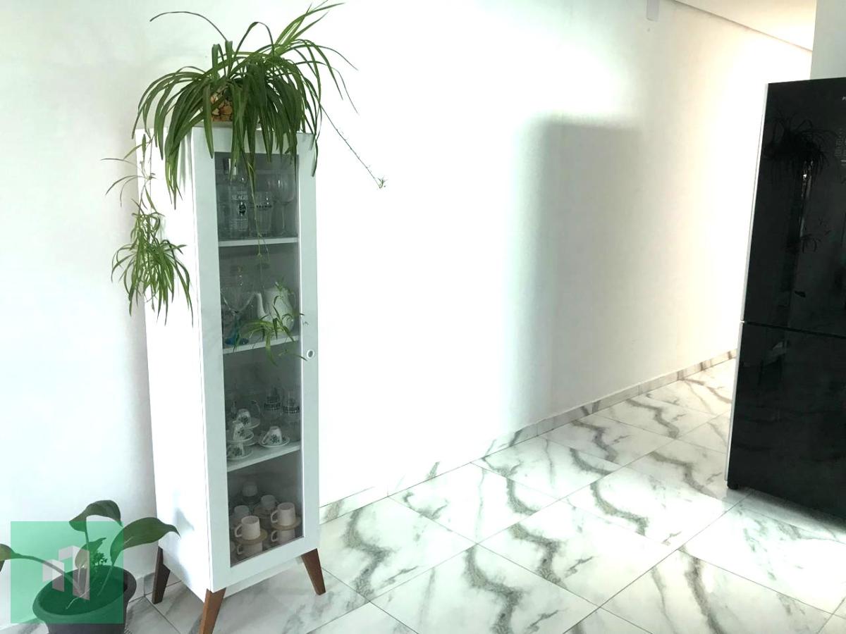 O imóvel tem 2 quartos, sendo 1 suíte, possui 2 banheiros, 1 sala, cozinha planejada, área de serviço, sacada, corredor lateral e 2 vagas de garagem.